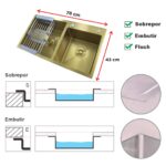 Cuba Cozinha Quadrada em Aço 304 Nano Gold Guimmis 7843T